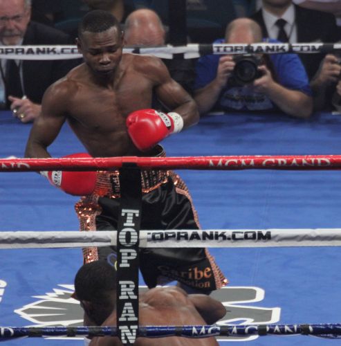 Referee Russell Mora, stopped the actions in the fifth round to a TKO victory at the 1:11 mark for the “Chacal” Rigondeaux.