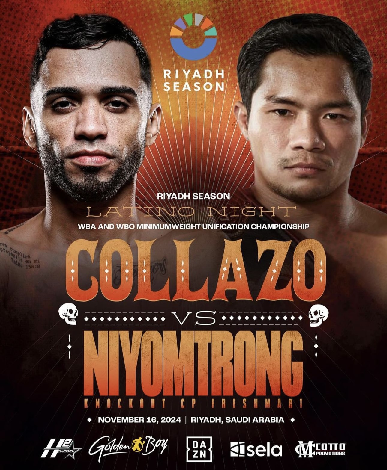 The minimumweight unification fight between World Boxing Association (WBA) champion Thammanoon Niyomtrong and WBO champion Oscar Collazo will be one of the main attractions at Latino Night, Riyadh Season’s event, next Saturday, November 16 at The Venue, in Riyadh, Saudi Arabia.