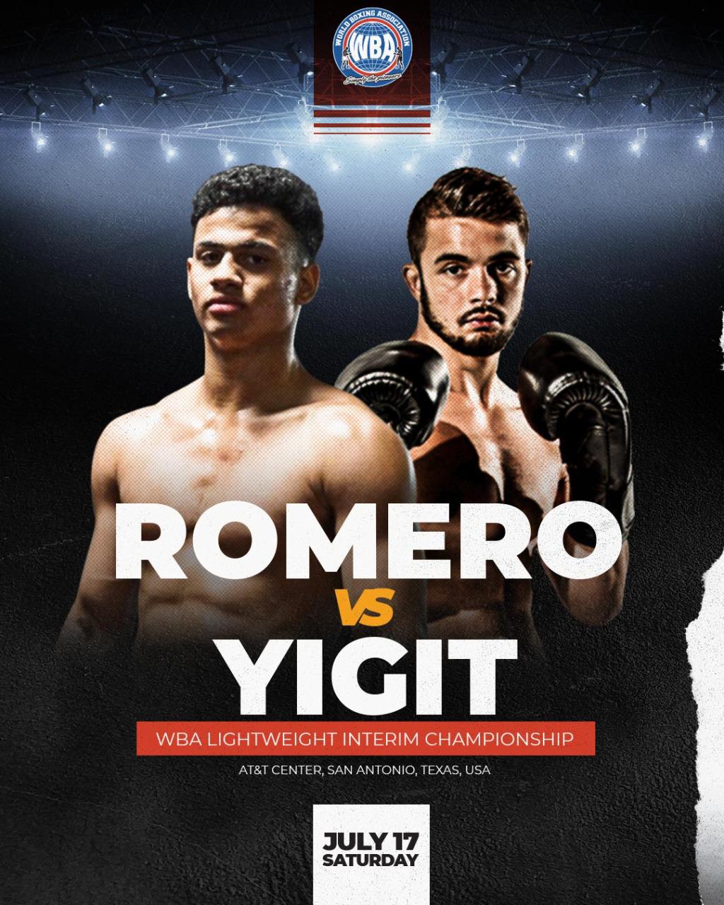 Rolando Romero will defend his World Boxing Association (WBA) Interim Lightweight title for the first time this Saturday against Swedish Anthony Yigit. The bout will be part of the Premier Boxing Champions event at the AT&T Center in San Antonio, which will feature Jermell Charlo and Brian Castaño.