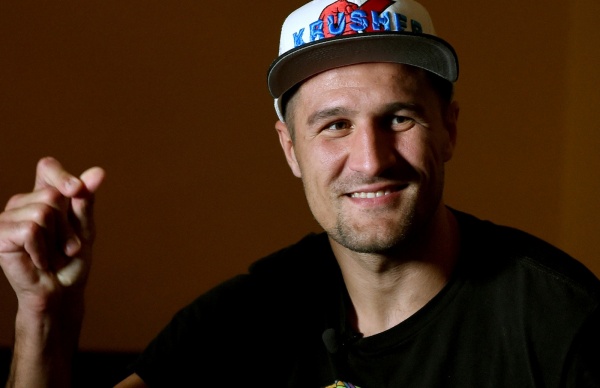 Sergey Kovalev met with local media and members of the Russian community in Las Vegas at the Green Dacha Grill on Tuesday. THE RING’s No. 1-rated light heavyweight also engaged in an arm wrestling demonstration with fellow Russian Kirill Yakovlev, a World Armwrestling Championship staff member, and posed for photos with fans.