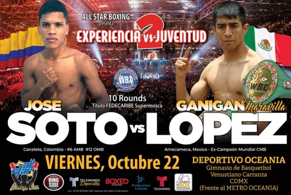 Colombian Jose Soto and Mexican Ganigan Lopez will have a youth vs. experience fight on Friday at the Blackberry Auditorium in Mexico City, in which the World Boxing Association (WBA) Super Flyweight Fedecentro title will be at stake.