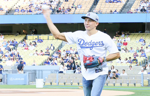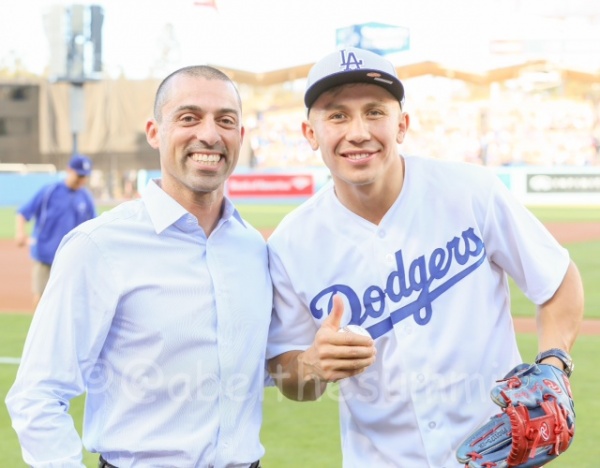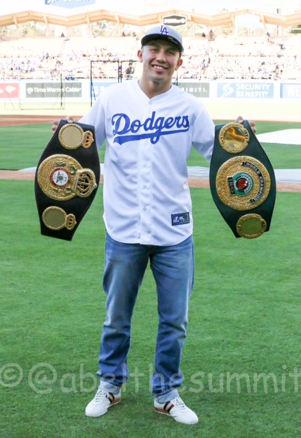 Golovkin, who is training in Big Bear, was invited to make the ceremonial starting pitching for the baseball game.