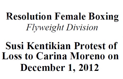 Susi Kentikian Protest of Loss to Carina Moreno on December 1, 2012