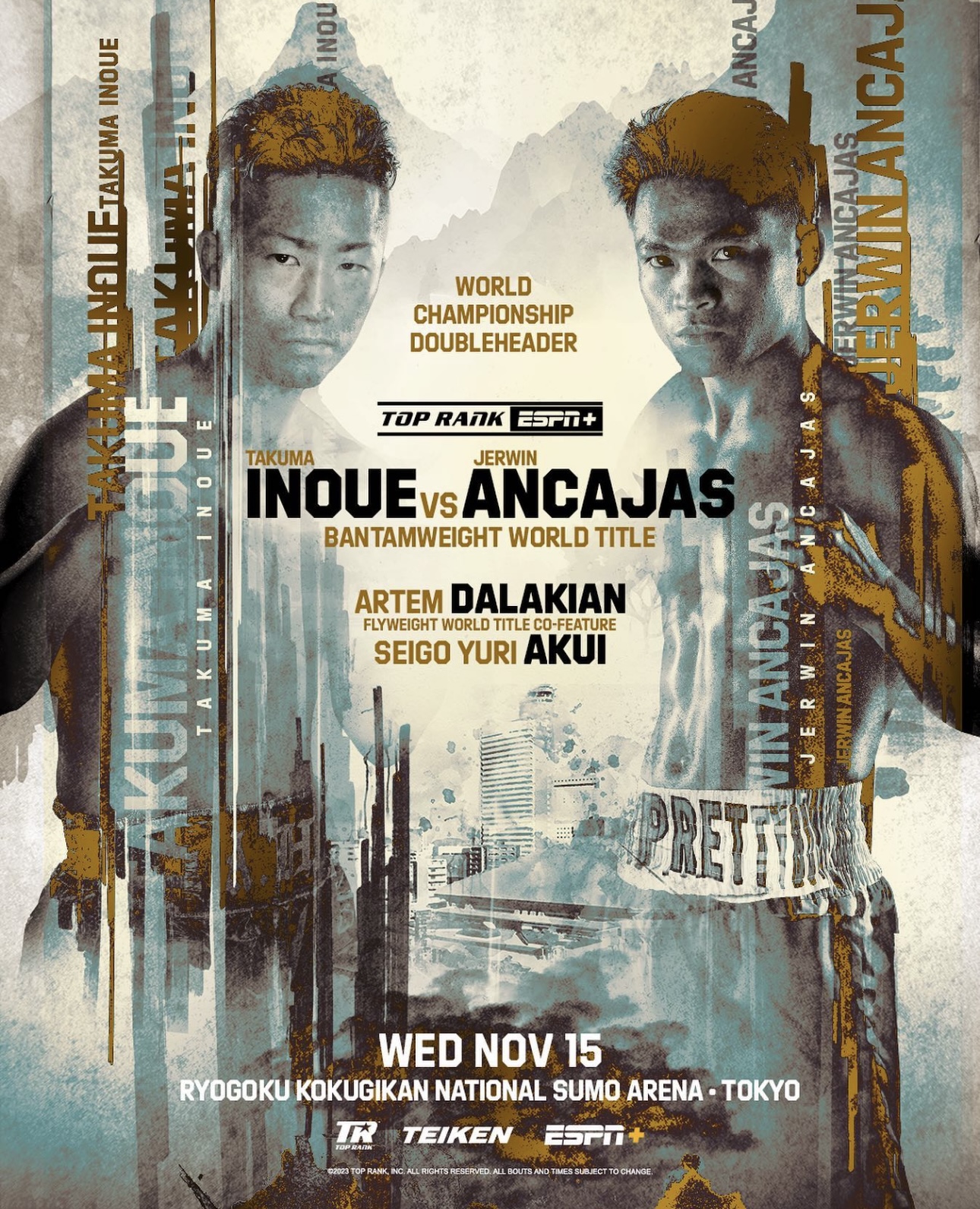 Inoue has a record of 18 wins, no losses and 4 knockouts, while Ancajas comes in with a record of 34 wins, 3 losses, 2 draws and 23 knockouts.
