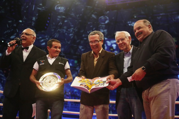 Gilberto Mendoza, President of the World Boxing Association, Nelson Merentes, President of the Central Bank of Venezuela, former world champion Betulio González and the author of the text participated in the launching of the book.