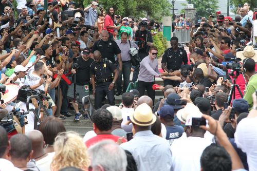 Because the fighters were staying at different Atlanta hotels, a significant challenge backstage was making sure Canelo – who stayed at the nearby W hotel – didn’t arrive so early that he’d have to wait for Mayweather, who was farther away at the Intercontinental. Canelo arrived early for the Day 3 stop in Grand Rapids and was predictably not happy. As a result, lead Mayweather publicist Kelly Swanson was among a horde of venue staff constantly tracking and updating the pair’s movements. “There’s nowhere to wait here, and I don’t want (Canelo) to just sit in his car for an hour,” she said.