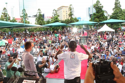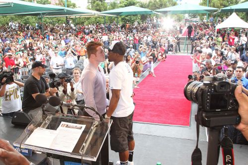 The common denominators that linked outdoor events on the first three days of THE ONE press tour didn’t change when Floyd Mayweather and Canelo Alvarez descended on Centennial Park in Atlanta for stop No. 5 on day No. 4 of an international 11-city odyssey.