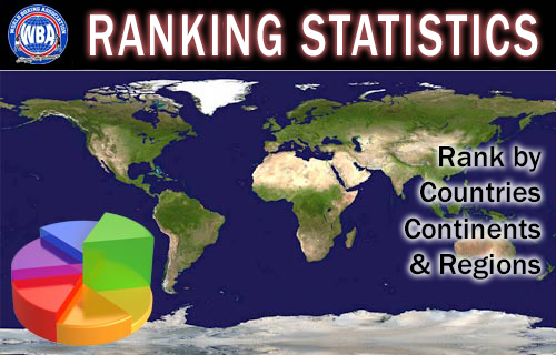 46 % of the boxers present in the ratings of the WBA are North American, 20.80 % from Europa, and the same percentage from Asia.