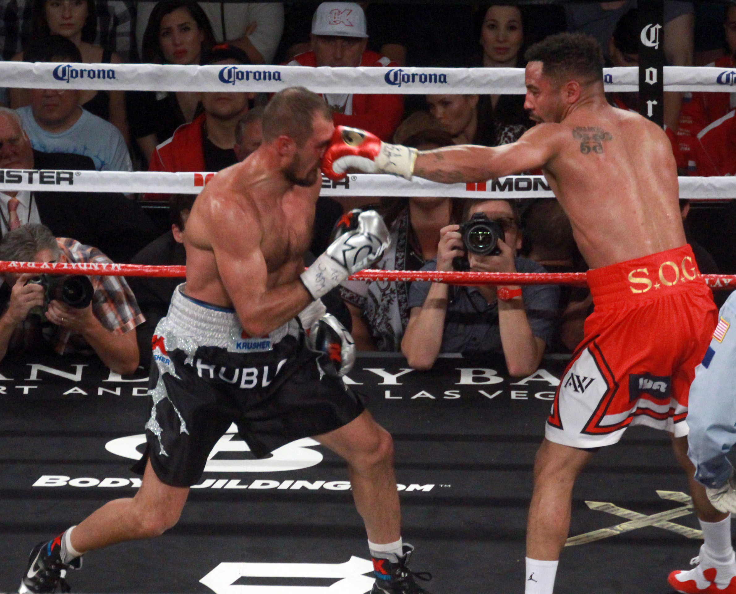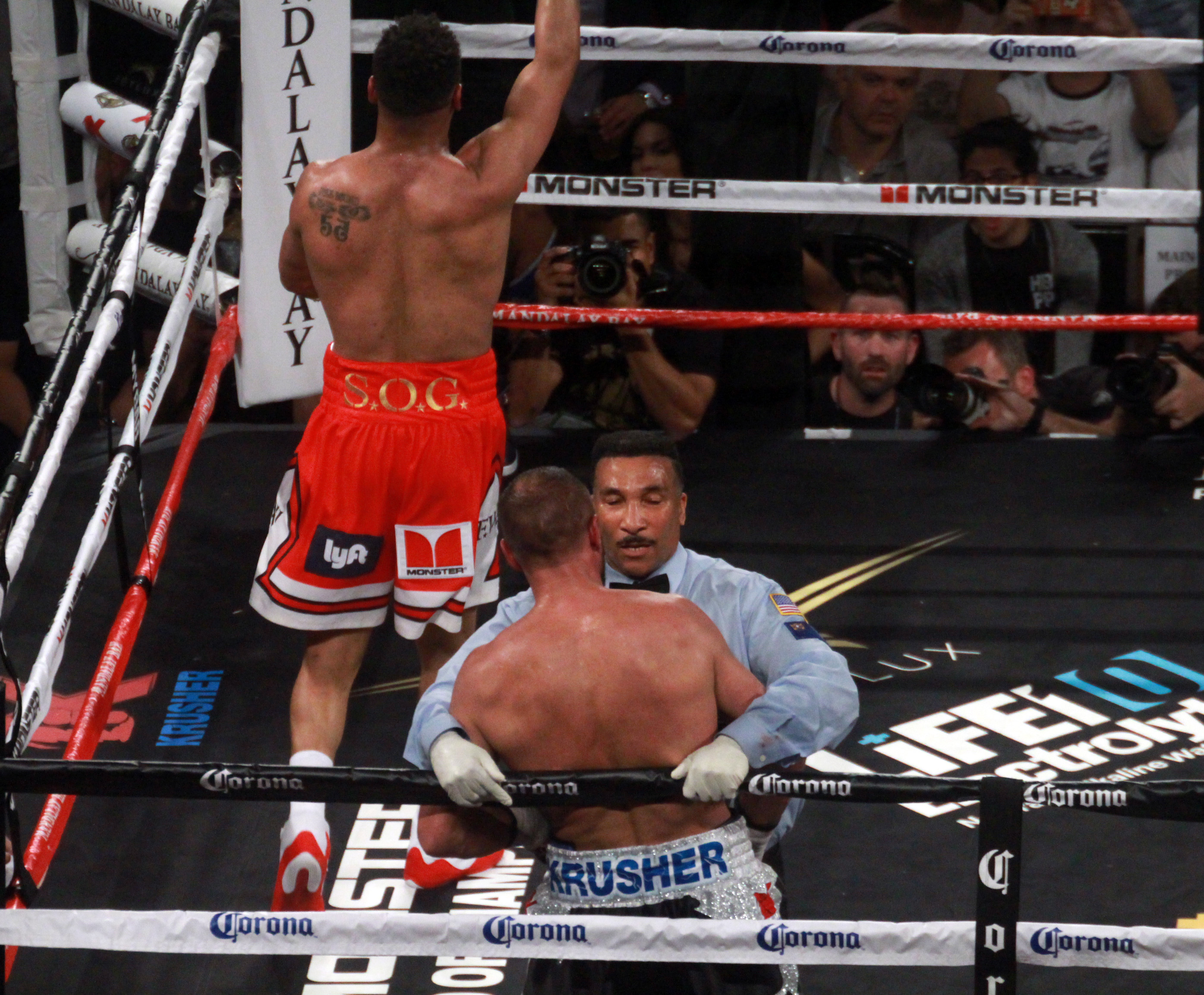 After the beginning of the fifth round, Ward became more effective and threw large jabs that hurt his opponent. Also, the uppercuts to the middle zone started to hurt. This became more evident in the eighth round when “SOG” connected a big hook to Kovalev’s face, who looked very bad. The American took advantage of the moment and continued the attack with good uppercuts. Shortly after, with “Krusher” against the ropes, Weeks intervened to stop the fight and declare the TKO.