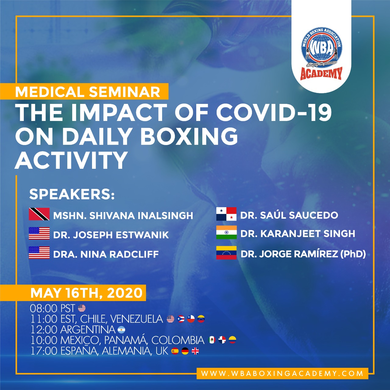 The World Boxing Association (WBA), will hold this Saturday the medical seminar called “The Impact of Covid-19 on Daily Boxing Activity”, endorsed by the WBA Academy and that will start at 11:00 am, US EST.