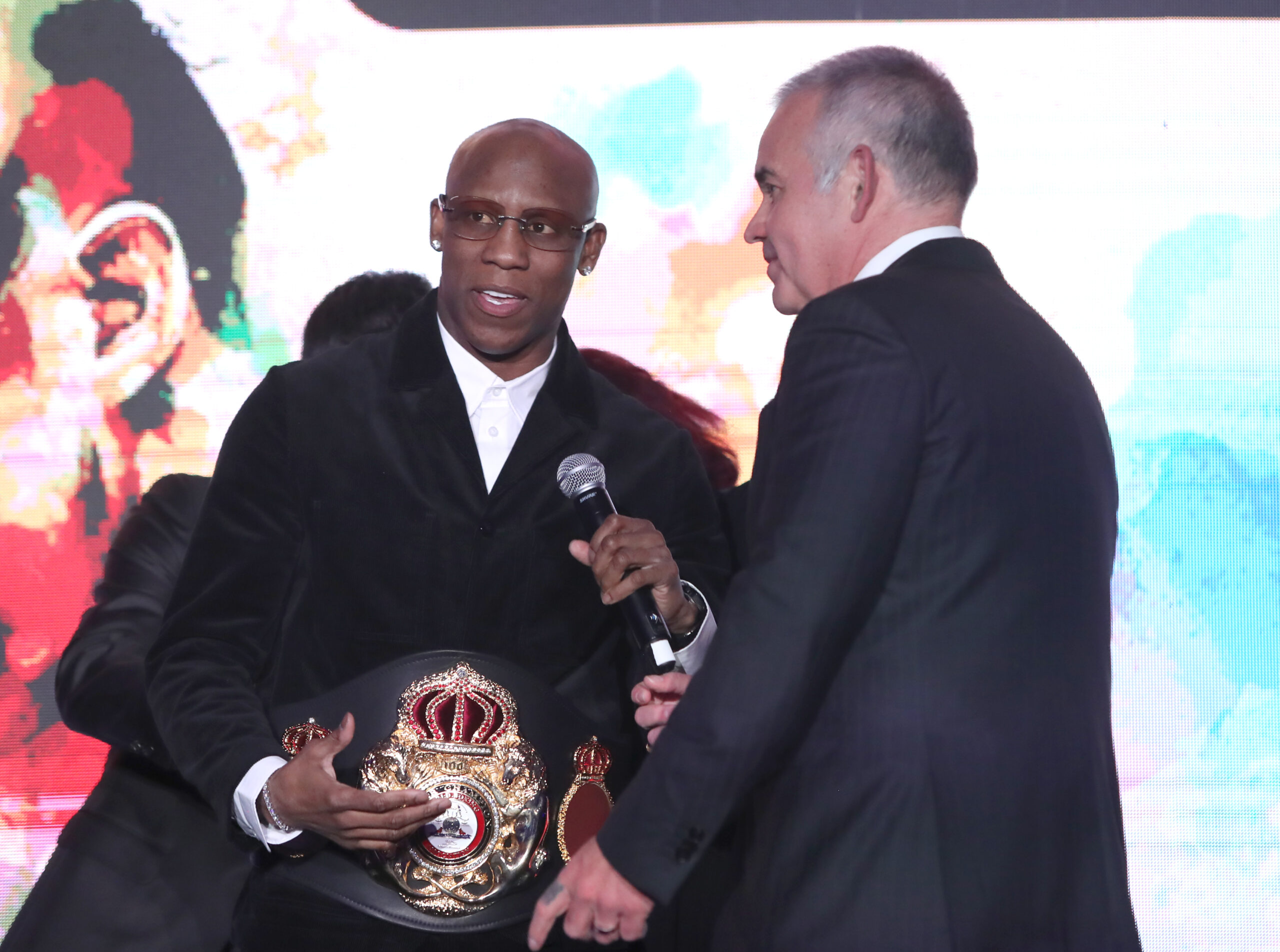 President Gilberto Jesus Mendoza presented a new World Boxing Association (WBA) belt to former world champion, Cuban Yordenis Ugas, during the opening ceremony of the pioneering body’s 102nd Convention at the Caribe Royale Hotel in Orlando, Florida.