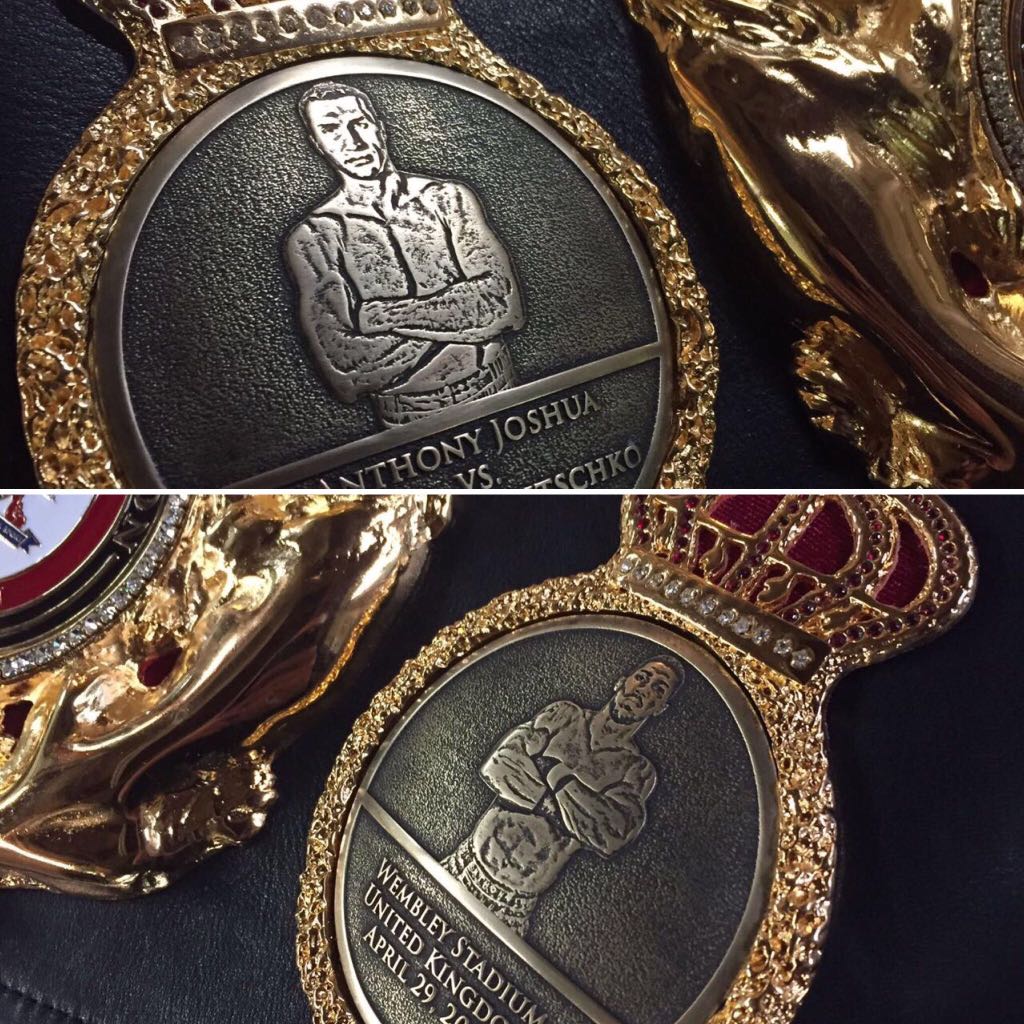 This time the Super Champion Black and Gold belt, besides to the Lions on the central plate symbolizing the fierceness and honor of the boxers, will have on the sides two plates with the silhouette of Klitchsko on the left and Joshua on the right. It will also have the date and place of this spectacular battle printed.