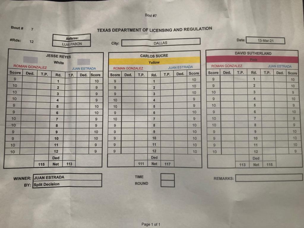 “I asked the Officials Committee to evaluate the fight although I think it is not necessary. It was a great fight, very close. We have to respect “Gallo” Estrada, who made a great effort. In this case the judges favored him, however I sent a temporary suspension while Sucre is heard, because big shows and fights like this one do not deserve the kind of score he gave. His decision was misguided yesterday,” said Mendoza.