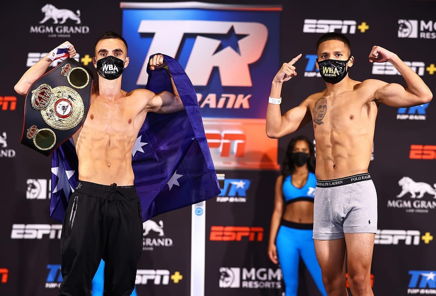 Australian champion Moloney stopped the scale at 114.6 pounds, while the American challenger stopped it at the exact 115 pounds.