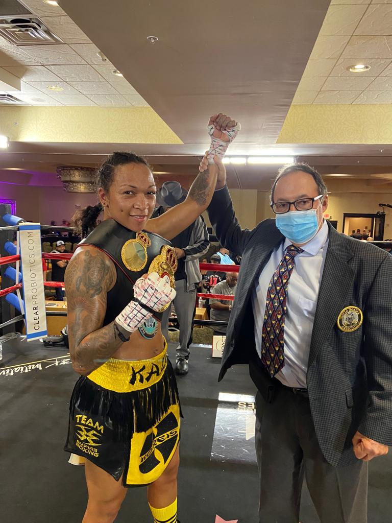 Apodada con el nombre de la tribu de sus ancestros como KO Wampanoag, la boxeadora de Road Island expuso su mejor boxeo sobre el ring de St. Petersburg Marriott Clearwater, San Petersburgo, Florida, Estados Unidos, frente a una rival que le presentó pelea hasta el final buscando adueñarse del centro del cuadrilátero.