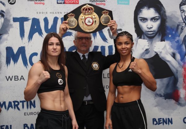 La irlandesa Katie Taylor y la estadounidense Jessica McCaskill cumplieron con la báscula, este martes 12 de diciembre, al pesar 134.1 y 132.9 libras respectivamente. De esta forma ambas están acreditadas para combatir por el Título Femenino del peso Ligero, este miércoles en Inglaterra.