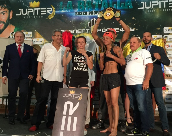 La campeona 118 libras peso gallo, la venezolana Mayerlin Rivas (12-3-1, 9 KO) pesó 117.4 libras, mientras que la interina de la división, la búlgara Galina Ivanova (16-10-4, 2 KO) hizo 117.2. Protagonizarán la pega co estelar de la velada.