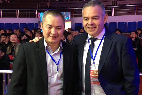 Liu Gang, presidente de Zowi Boxing Promotions (izq) y Gilberto Jesús Mendoza, presidente de la AMB