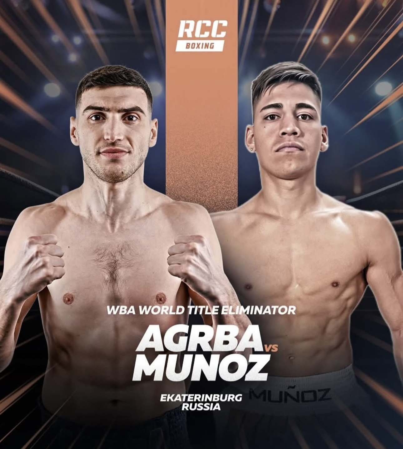 El DIVS Arena de Ekaterimburgo, Rusia, será el escenario de un combate crucial en la ruta hacia el campeonato mundial superligero de la Asociación Mundial de Boxeo (WBA) este sábado 5 de julio. El invicto ruso Khariton Agrba (15-0, 9 KO) se medirá con el argentino Rubén Neri Muñoz (17-2, 13 KO) en una eliminatoria oficial camino al título de las 140 libras.
