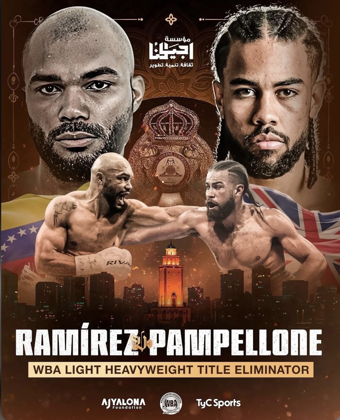 Este viernes 8 de agosto, el venezolano Albert Ramírez (21-0, 18 KO) se medirá al británico-neozelandés Jerome Pampellone (19-2, 12 KO) en una eliminatoria mundial del peso semipesado, en el marco de la cartelera internacional KO a las Drogas, que se celebrará en el Estadio Martyrs of Benina de Bengasi, Libia.
