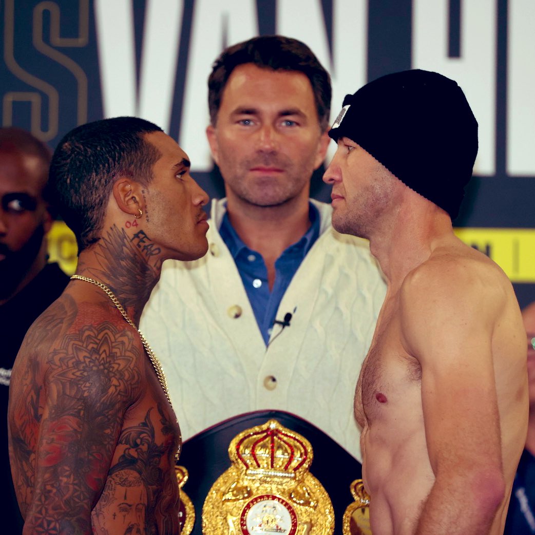 El campeón continental de peso welter de la Asociación Mundial de Boxeo (AMB), el británico Conor Benn, y su retador, el surafricano Chris Van Heerden, hicieron el peso para su combate de este sábado en la Arena de Manchester, Inglaterra.