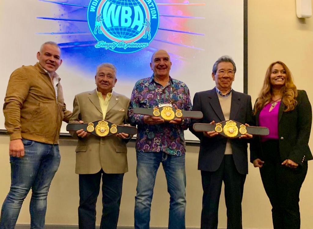 Gilberto Jesús Mendoza, presidente de la Asociación Mundial de Boxeo (AMB), rindió tributo a tres pilares del organismo como lo han sido el sudafricano Stanley Christodoulou, el surcoreano Alam Kim y el panameño Aurelio Fiengo a quienes nombró miembros vitalicios de la AMB por sus años de servicio y apoyo al desarrollo sistemático del boxeo.