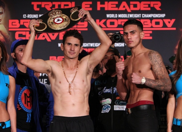 Sin problemas se cumplió la ceremonia del pesaje en el Hotel Cosmopolitan de Las Vegas, donde el campeón interino 140 libras súper ligero de la Asociación Mundial de Boxeo, Mauricio Herrera y su retador José Benavidez hicieron el peso exigido para la batalla sabatina.