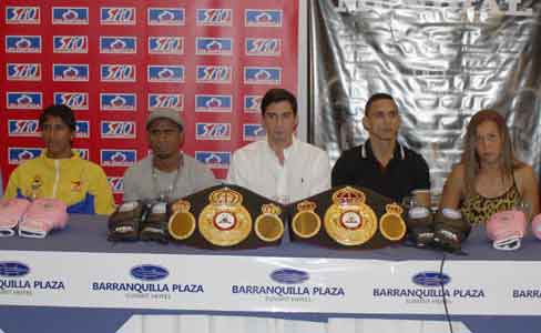 Ambos peleadores estelares, el promotor Chams, el directivo de la AMB, Aurelio Fiengo, autoridades locales, el ex triple campeón mundial Hilario Zapata y demás peleadores que verán acción en el festival, participaron este miércoles por la tarde de una concurrida conferencia de prensa, en el Hotel Barranquilla Plaza.