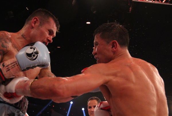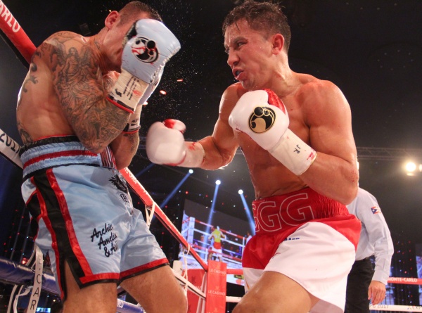 Golovkin siempre impuso su poder y ritmo en la batalla, además se mostró como acostumbra, cazador implacable ante su retador quien recibió el primer y segundo conteo en el round 4 de la pelea, y otro en el décimo.