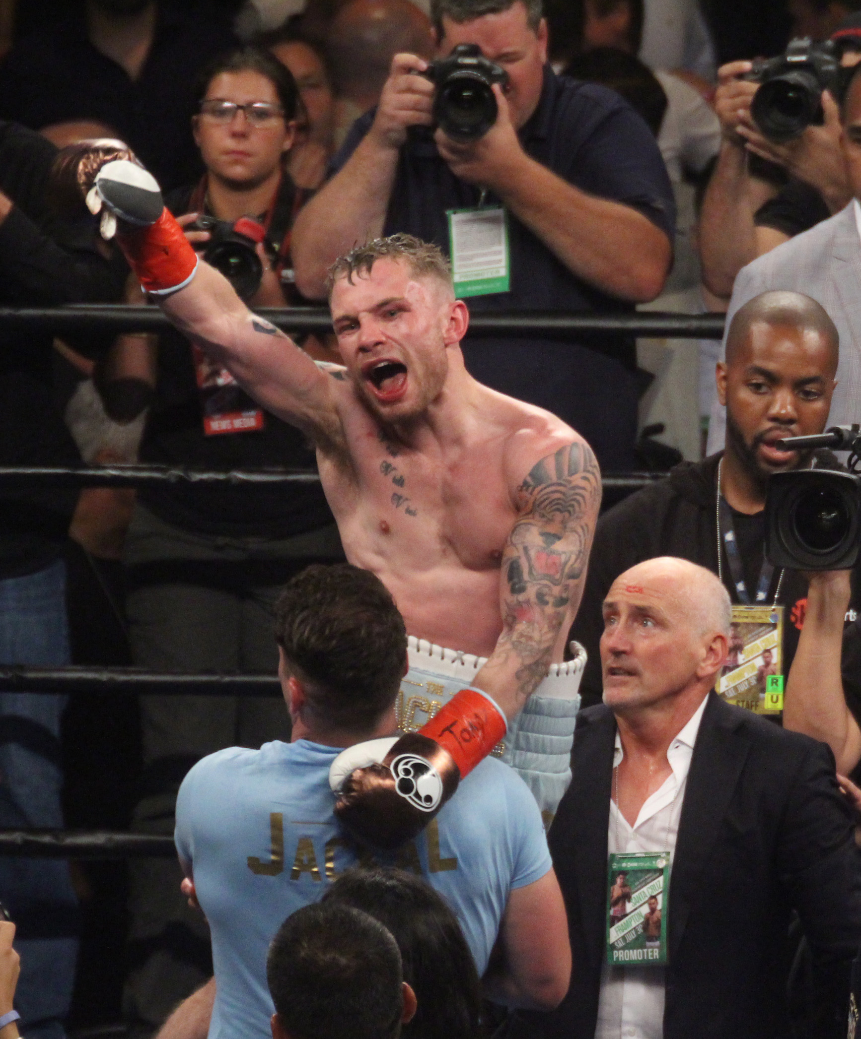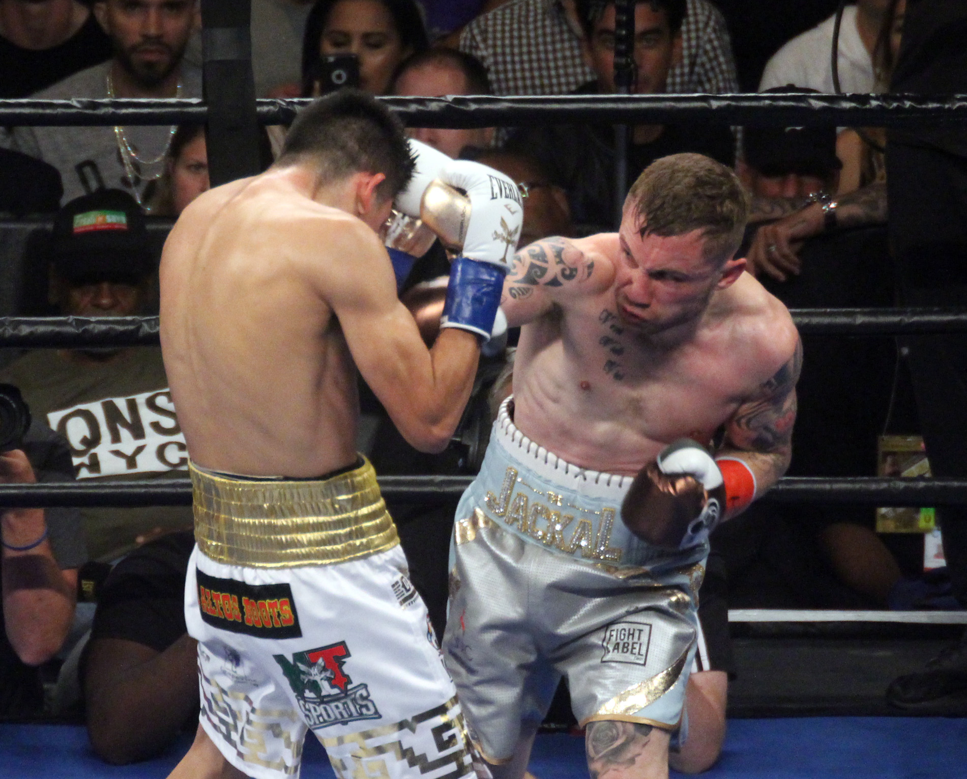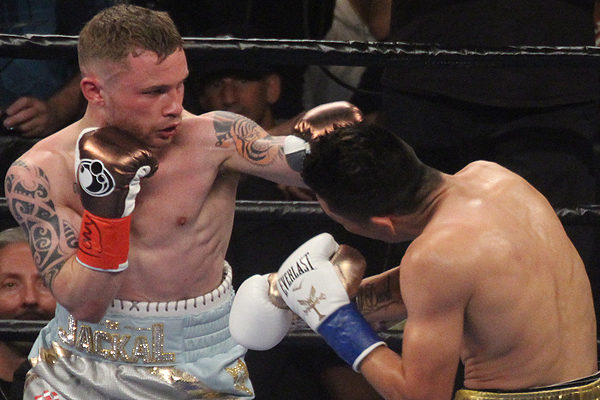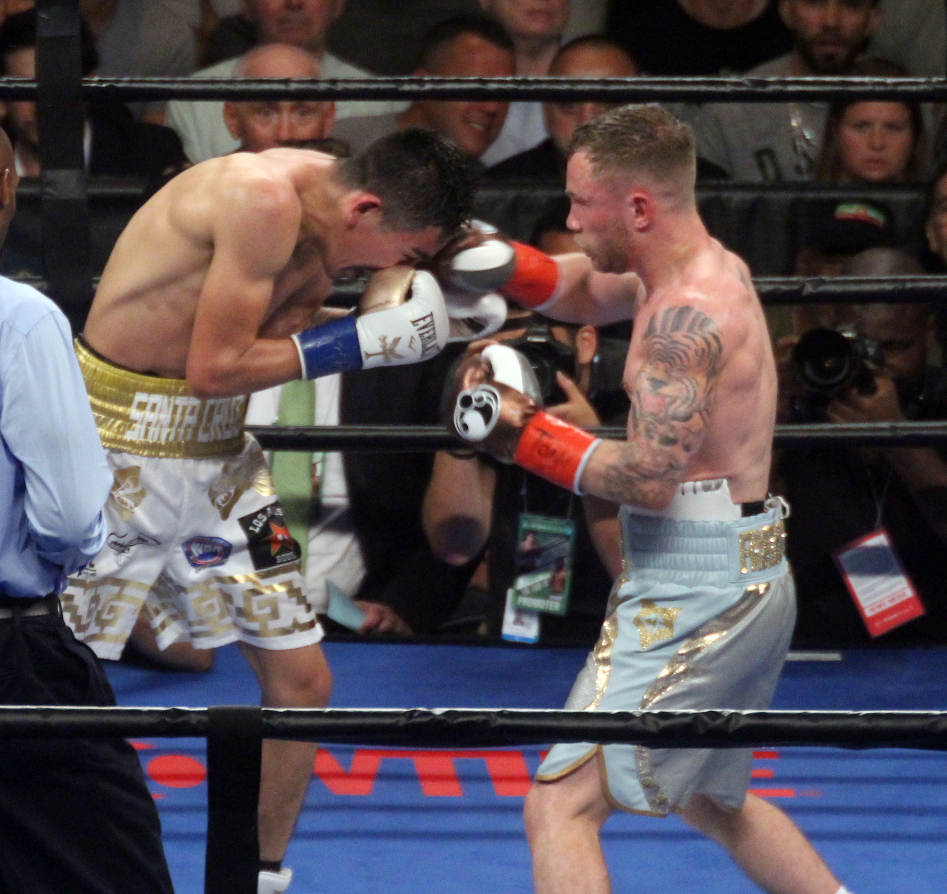 “The Jackal”, como se le conoce al gladiador de Reino Unido, pisó el celador desde el primer asalto y logró entrar a la guardia de Santa Cruz, a pesar de su menor alcance, conectando de forma contundente y dando con inteligencia el paso atrás para mantenerse alejado del peligro. En el segundo round el europeo continuó en la misma tónica y con una buena derecha en corto hizo tambalear al mexicano, quien logró mantenerse en pie.