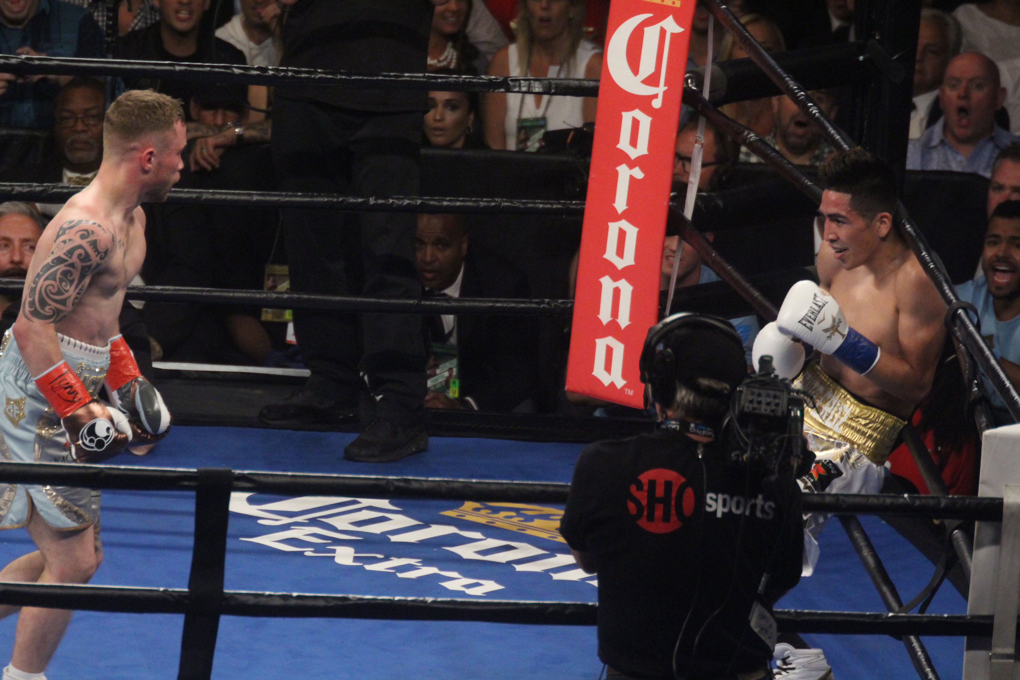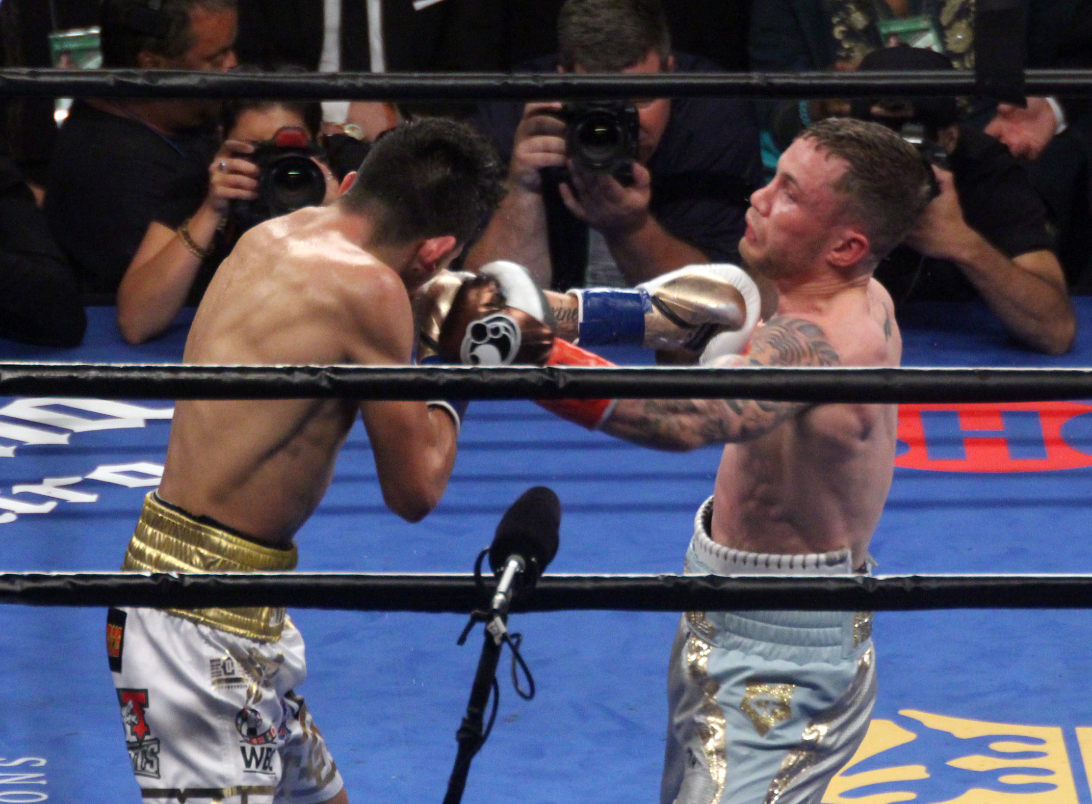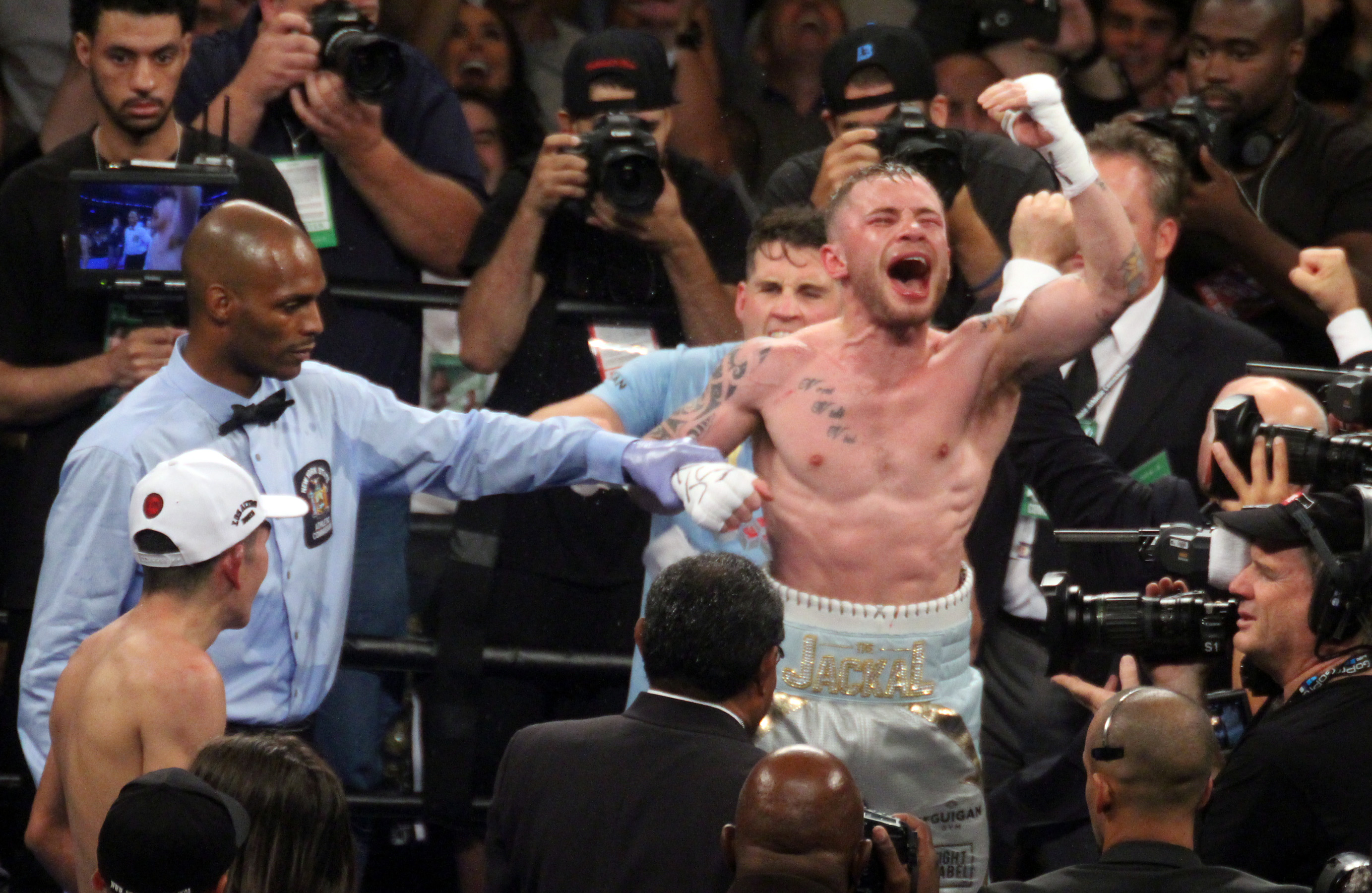 “The Jackal”, como se le conoce al gladiador de Reino Unido, pisó el celador desde el primer asalto y logró entrar a la guardia de Santa Cruz, a pesar de su menor alcance, conectando de forma contundente y dando con inteligencia el paso atrás para mantenerse alejado del peligro. En el segundo round el europeo continuó en la misma tónica y con una buena derecha en corto hizo tambalear al mexicano, quien logró mantenerse en pie.