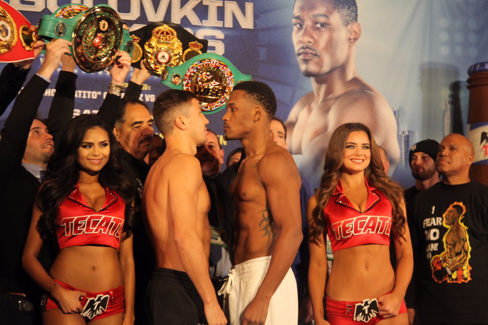 El kazajo Gennady Golovkin y el estadounidense Daniel Jacobs cumplieron con la báscula este viernes al marcar 159.6 y 159.8 libras respectivamente. De esta forma están listos para batallar, este sábado en el Madison Square Garden de Nueva York, por el supercampeonato mediano de la Asociación Mundial de Boxeo.