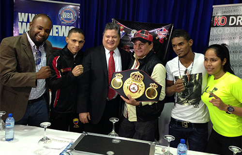 Roberto “Manos de Piedra” Durán estuvo presente en la Conferencia de prensa realizada en el DNCD de Santo Domingo, República Dominicana, sede del XXIX KO a las Drogas, este sábado 28 de junio de 2014 en el Hotel Sheraton y tendrá de pelea estelar la batalla de título interino de peso ligero de la AMB.
