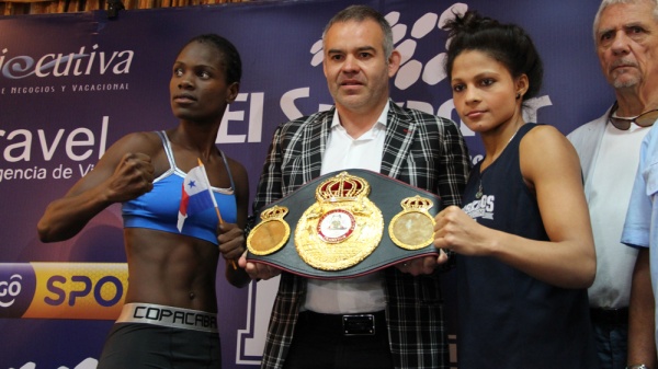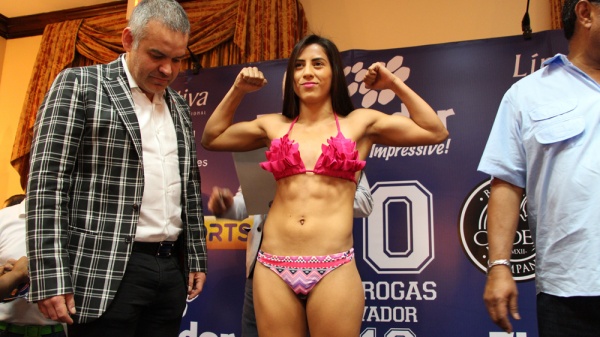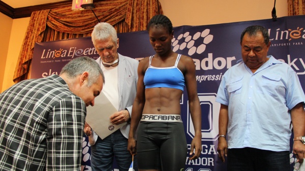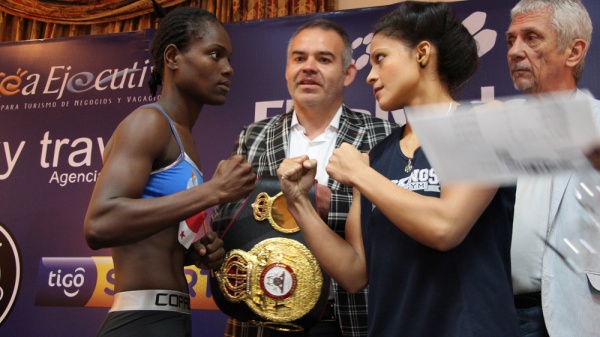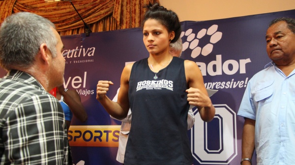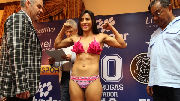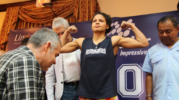 La colombiana Dayana Cordero y la panameña Sayda Mosquera, marcaron ambas 117.6 libras en el pesaje previo a la velada que protagonizarán con una pelea de título interino 118 libras