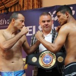 El cinturón WBA Fedecentro peso welter lo pelearán Aristides Quirero, quien pesó 146.6 libras, y Roberto Arrianza, quien hizo 147 libras.