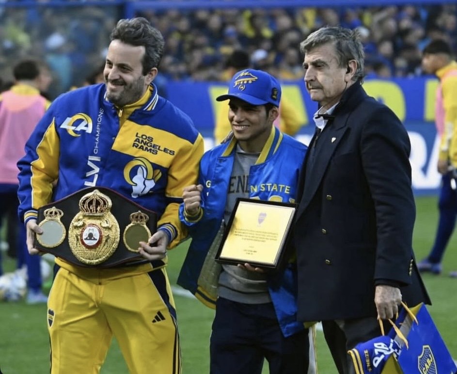 El monarca de la WBA estuvo junto a su equipo exhibiendo la faja negro y oro en medio del mítico campo de uno de los equipos más importantes del mundo. Allí emitió unas palabras a los presentes mientras recibía un galardón por su gran carrera deportiva en vísperas de su enfrentamiento contra Bam Rodríguez el próximo 22 de noviembre.