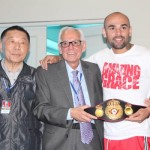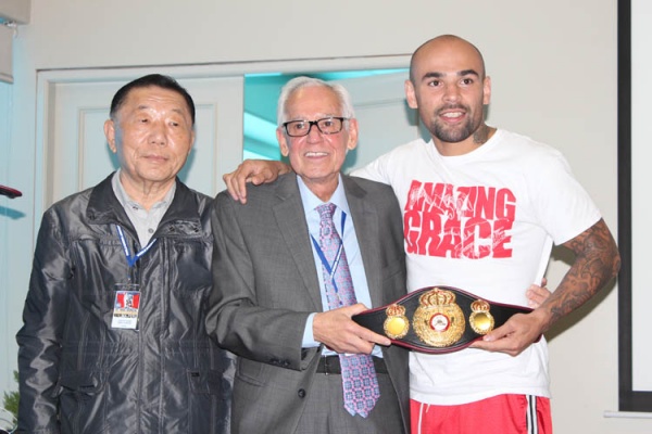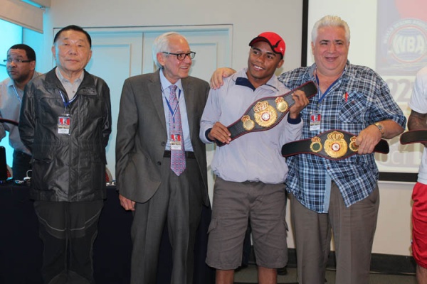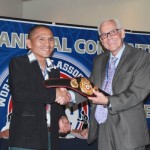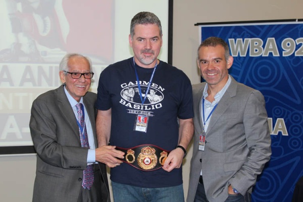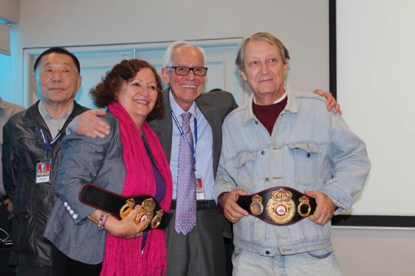 Réplica de fajas para reconocer la labor de años, y resarcir “cuantas veces son duramente criticados por errores y pocas veces felicitados por el buen trabajo”, como a Luis Pabon. Una faja para el árbitro Stanley Christodoulu quien ya suma 200 peleas mundiales.
