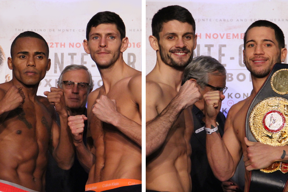 Los gladiadores que protagonizarán las peleas titulares de la Asociación Mundial de Boxeo en los pesos gallo y superpluma cumplieron con la báscula este viernes en Mónaco.