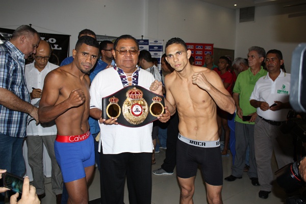 La corona WBA Fedebol del peso súper gallo será a 9 asaltos, entre José “El General” San Martín de Colombia, quien pesó 54 kilos 200 gramos, y el venezolano Franklin Manzanilla hizo 55 kilos exactos.