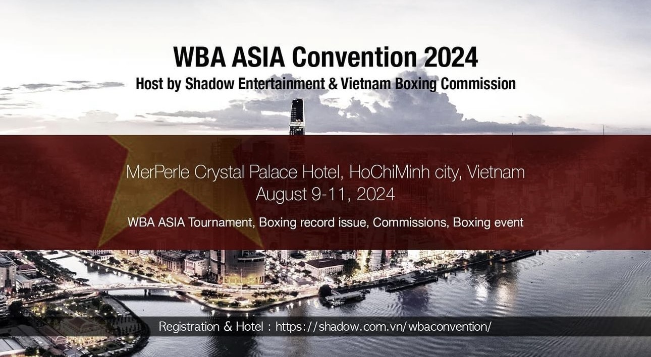 La Convención de WBA Asia se celebrará en el MerPerle Crystal Palace Hotel, de HoChiMinh City. Durante tres días de intensa labor, WBA Asia aspira reunir a importante personalidades de WBA, así como a dirigentes, boxeadores, referees, jueces, promotores y aliados del boxeo profesional de Asia.