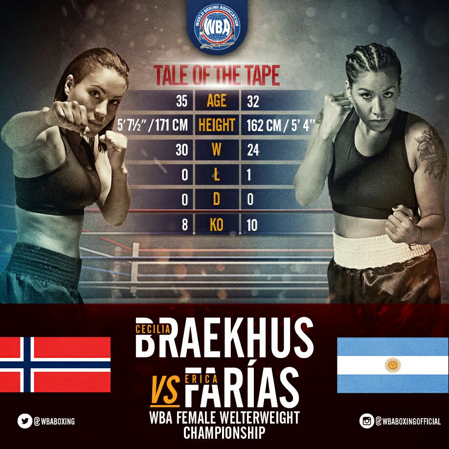 Both fighters have good technique in the ring. The Norwegian is 1,71 cm high, while the Farias is 1, 62 cm high. Apart from these factors and the locality, it is obvious that Braekhus is used to fighting in the welterweight since she has bee doing it for year, while Farias is new fighting in this division. They are both at similar age, 35 is years old “the panther” is 32. There is no doubt that this confrontation qualifies as one of the “fight of the century” in women’s boxing.
