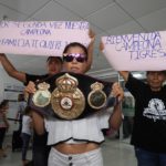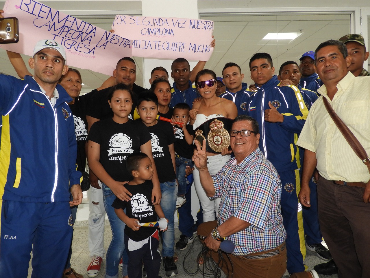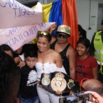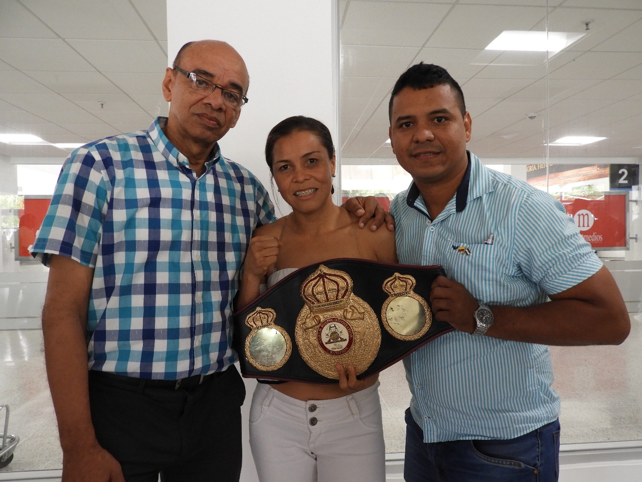 Palmera, who defeated the Venezuelan Alys Sánchez last Saturday, arrived in Montería showing her black and gold belt and immediately met with the press, who wanted to hear the first words of the Champion. Then, she could finally greet her family and friends, who went to receive her at the airport.