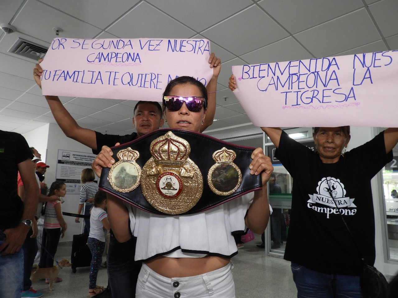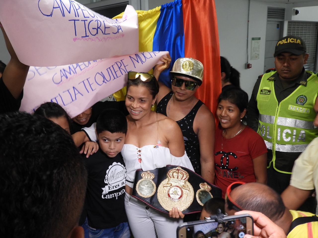 Liliana “La Tigresa” Palmera, World Boxing Association (WBA) World Super Bantamweight Champion, was received with distinction in her hometown Montería the morning of this Tuesday, November 21.