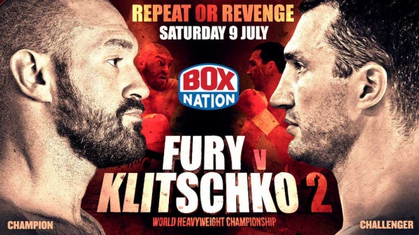 On Saturday, July 9, at Manchester Arena in Manchester, Lancashire, United Kingdom, WBA Super World heavyweight champion Tyson Fury (25-0. 18 KOs), from Wilmslow, Cheshire, United Kingdom, defends his WBA/WBO/IBO titles against former champion Wladimir Klitschko (64-4, 43 KOs), from Kiev, Ukraine, by way of Zhangiztobe, Kazakhstan.